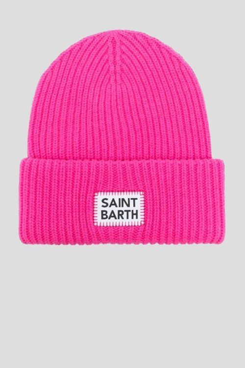 Детали: Женская шерстяная шапка бини цвета фуксии от Mc2 Saint Barth (Mc2 Сент Барт). Классическая вязка, нашивка с логотипом, широкий отворот