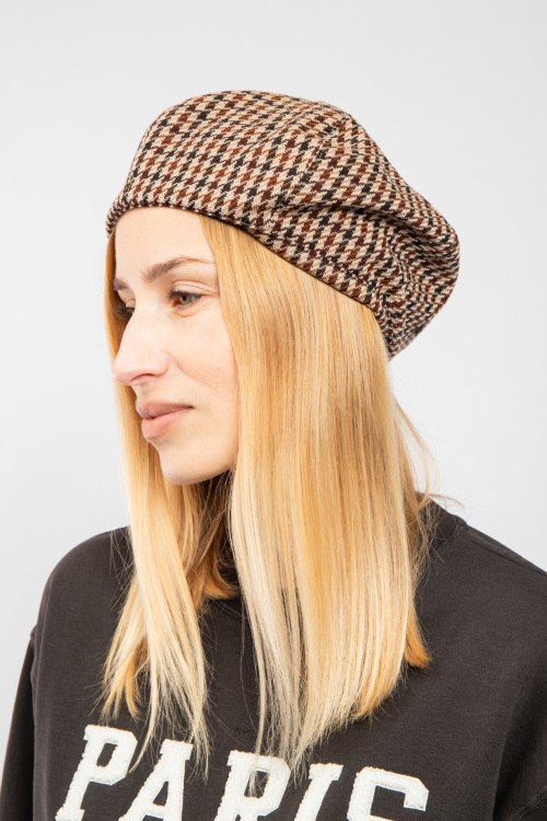 Детали: Женский коричневый берет из шерсти и хлопка Zannata от Max Mara Weekend (Макс Мара Викенд). Классический фасон, узор в гусиную лапку