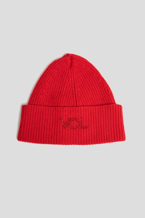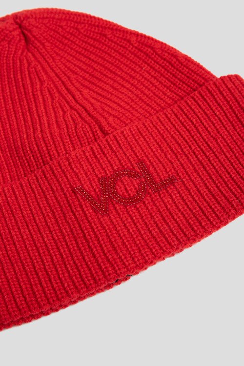 Детали: Женская красная шапка бини из вискозы и шерсти от Vicolo (Виколо). Модель с примесью кашемира, классическая вязка, широкий отворот, логотип из страз