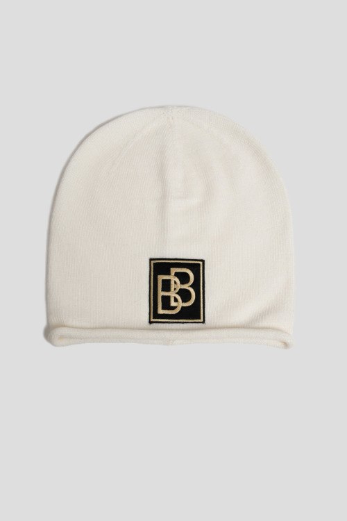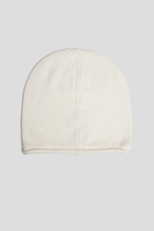Детали: Женская шапка-бини молочного оттенка из вискозы, ангоры, кашемира и эластана от Blanca Luz (Бланка Луз). Дизайн бини, патч-лого спереди
