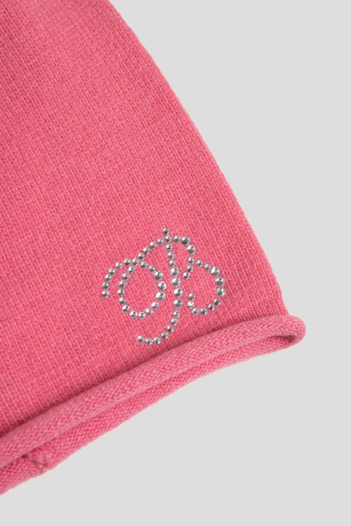 Детали: Женская розовая шапка из вискозы, ангоры и кашемира от Blanca Luz (Бланка Луз). Дизайн бини, необработанные края, декорирована модель аппликацией из кристаллов.