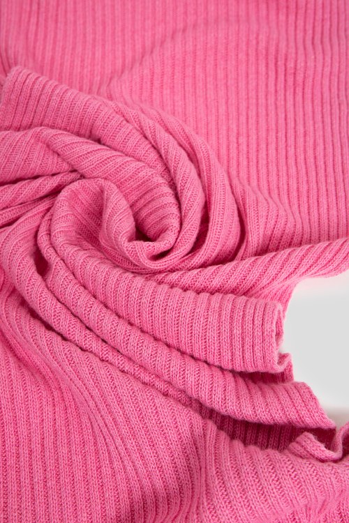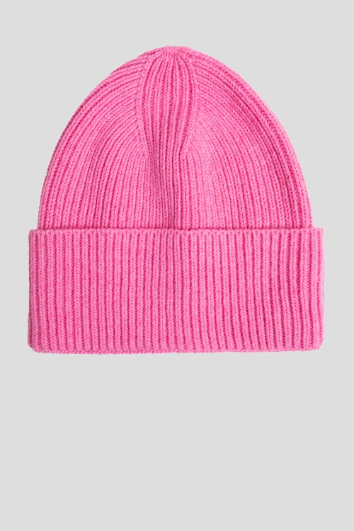 Женский розовый комплект из шерсти и вискозы от Cashmere (Кашемир). Модель с примесью шерсти, шапка бини и шарф классической вязки. Размеры: длина 205 см, ширина 55 см