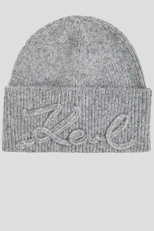 Детали: Женская серая шапка бини с примесью шерсти от Karl Lagerfeld (Карл Лагерфельд). Классическая вязка, вышитый логотип, широкий отворот