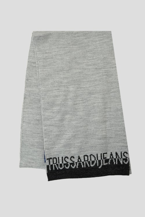 Детали: Комплект серого цвета, состоит из шапки и шарфа, модель с фирменным логотипом бренда