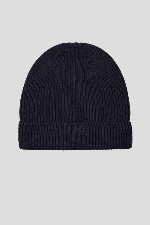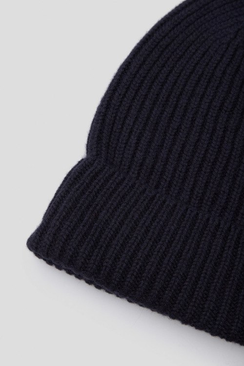 Детали: Женская темно-синяя шапка из шерсти мериноса от Maerz (Маерз). Модель бини, дизайн с отворотом, диаметр: 22 см