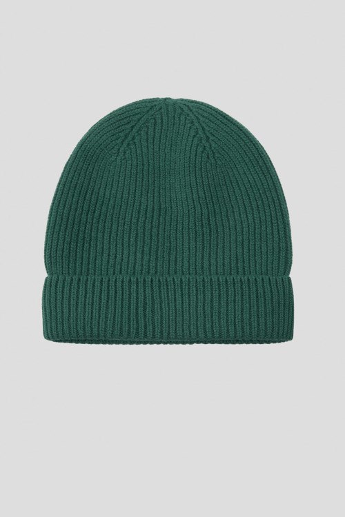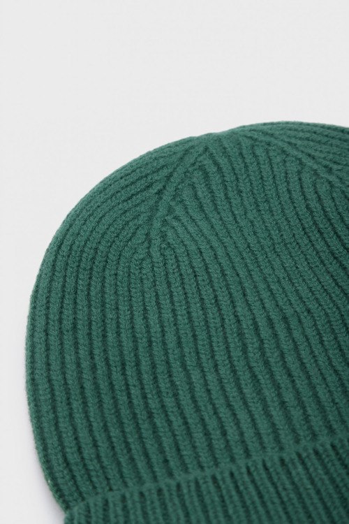 Детали: Женская зеленая шапка из шерсти мериноса от Maerz (Маерз). Модель бини, дизайн с отворотом, диаметр: 22 см