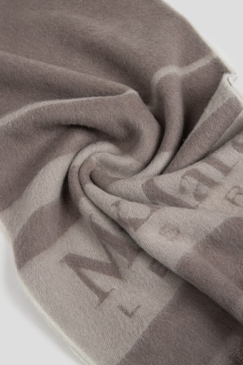 Детали: Женский бежевый шерстяной шарф Colibri от Max Mara Leisure (Макс Мара Лэжэ). Узор с логотипом, нижний край с бахрамой. Размеры: длина 185 см, ширина 38 см