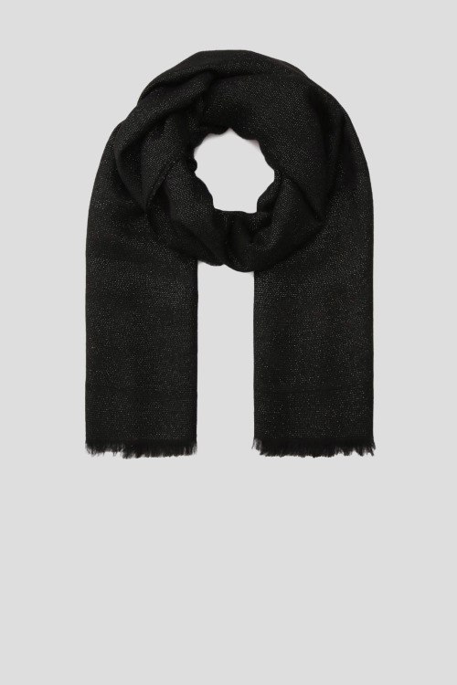 Детали: Женский черный шарф из модала и акрила от Coccinelle (Кочинелле). Классическая модель, необработанные нижние края