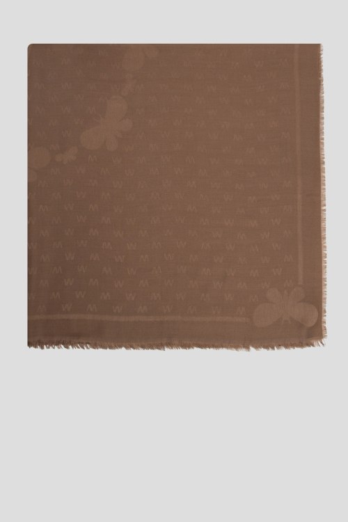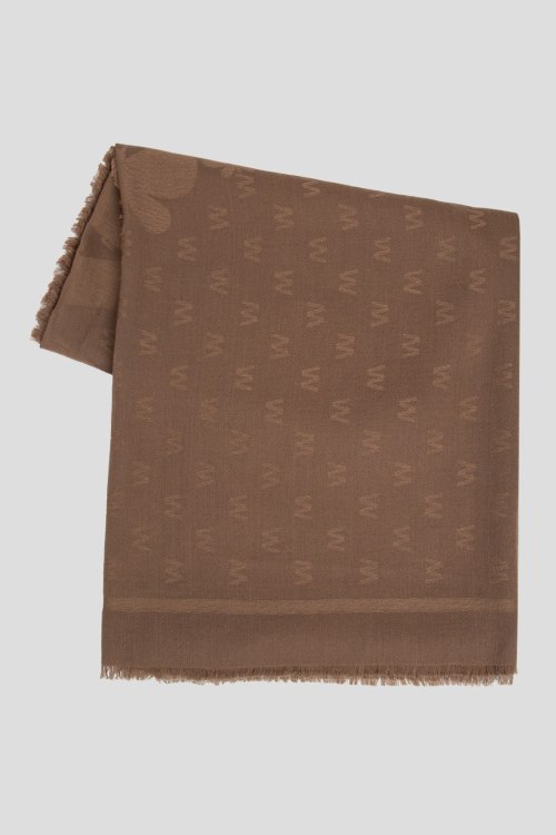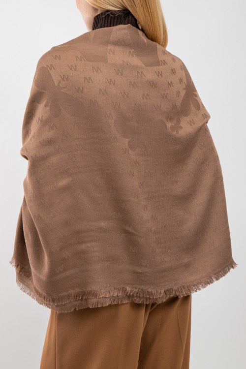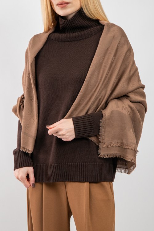 Детали: Женский коричневый палантин из вискозы и шерсти от Max Mara Weekend (Макс Мара Викенд). Прямоугольная форма, дизайн с монограммой, необработанные края