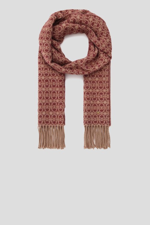 Детали: Женский красный шарф из шерсти и акрила от Coccinelle (Кочинелле). Узор по всей поверхности, нижние края с бахромой