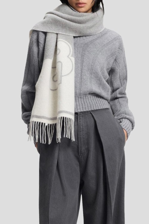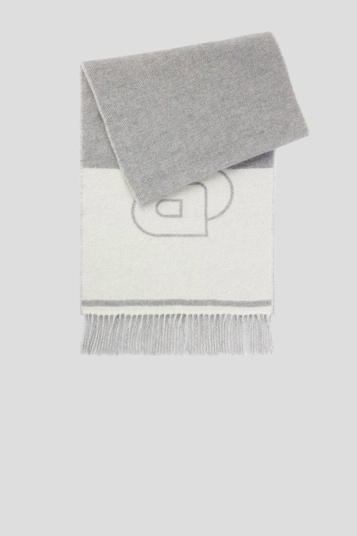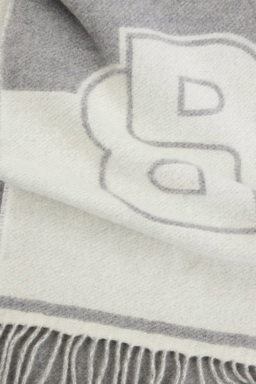 Детали: Женский серо-белый шерстяной шарф Vianna от Hugo Boss (Хуго Босс). Комбинация цветов, узор с логотипом, нижние края с бахромой. Размеры: 164 x 35 см