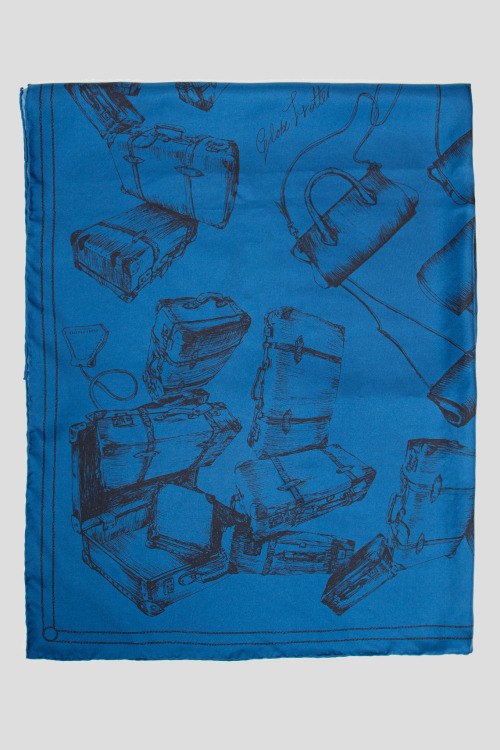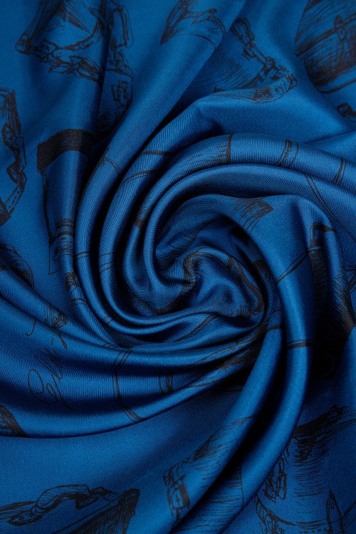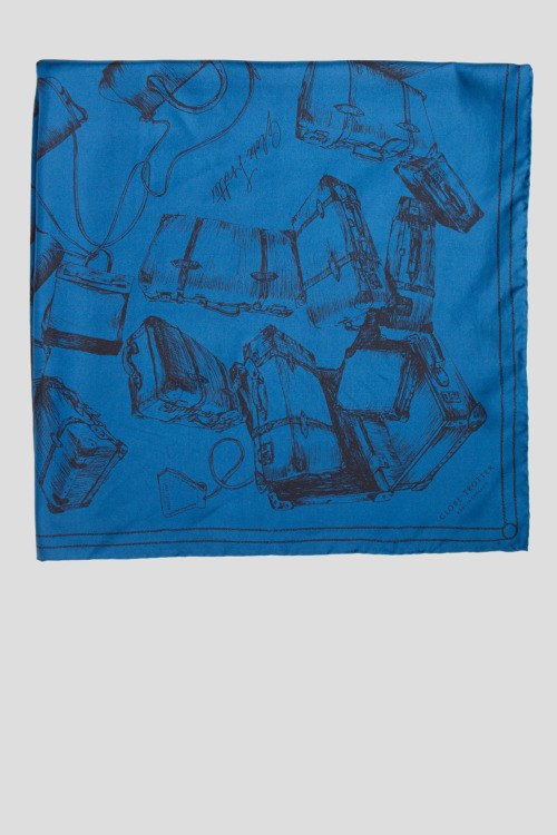 Детали: Женский синий шарф из натурального шелка от Globe-Trotter (Глоб-Троттер). Декорирована модель принтом по всей поверхности изделия, обработанные края