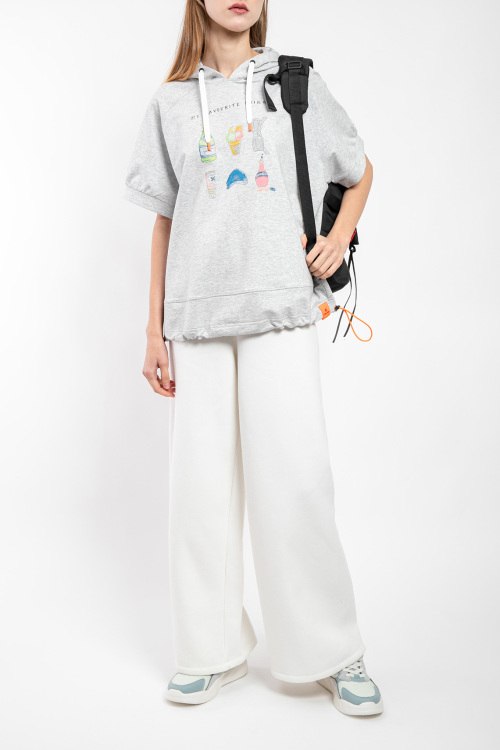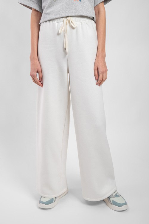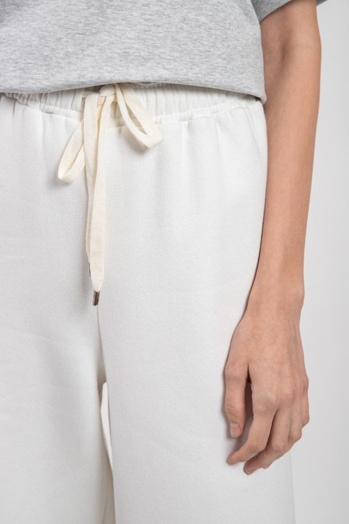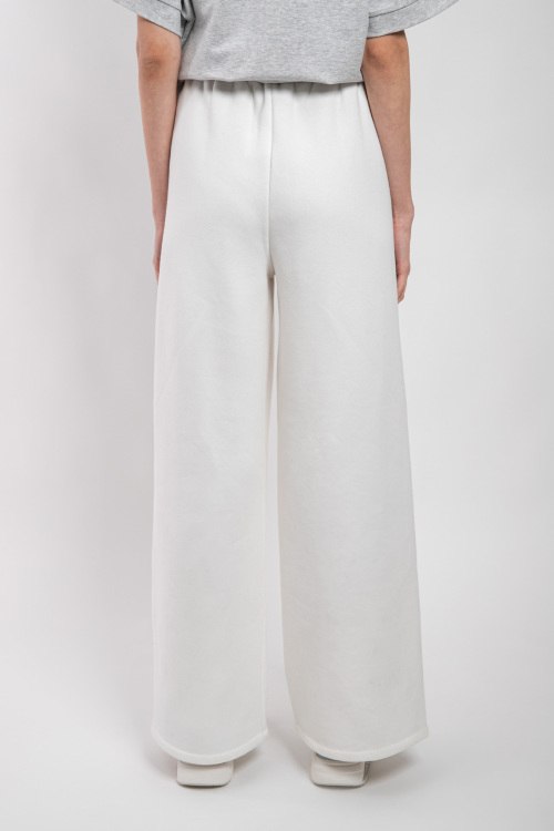 Женские белые брюки из хлопкового микса от Barbara Alvisi (Барбара Алвиси). Классическая длина, высокая посадка, эластичная резинка на поясе с кулиской, утепленная модель, расклешенная модель. Замеры для размера: S на флисе, длина 106 см, ширина по талии :35 см (резинка), ширина по бёдрам: 45 см, высота сидения: 38 см, ширина штанины вверху: 30,5 см.