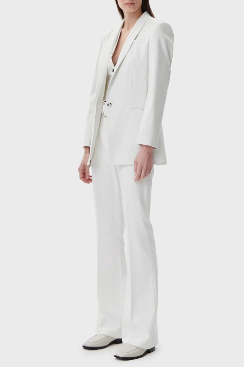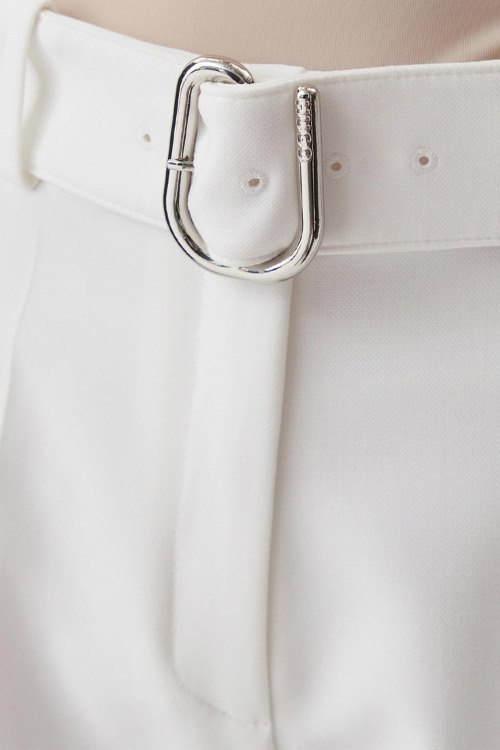 Детали: Женские белые брюки Stoffhose из полиэстера и вискозы от Hugo by Hugo Boss (Хуго бай Хуго Босс). Классическая длина, высокая посадка, застежка на пуговицу и молнию, пояс в тон изделия, прямой крой