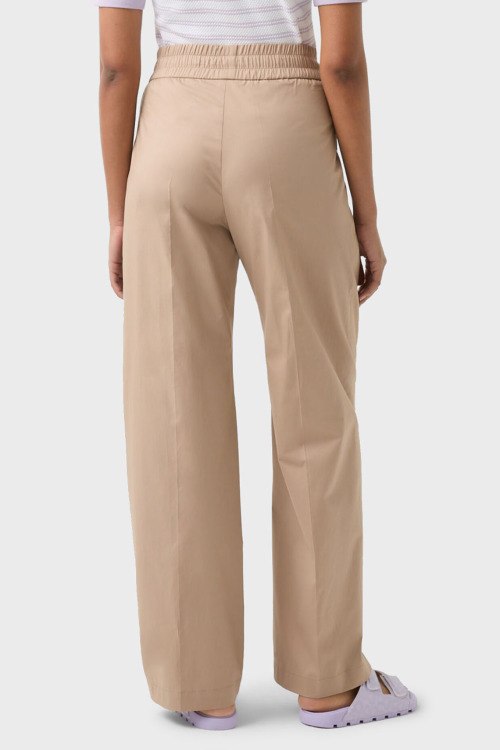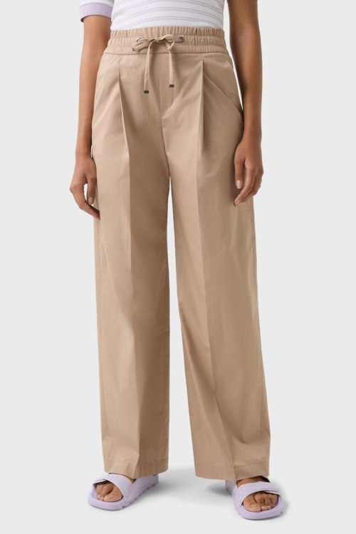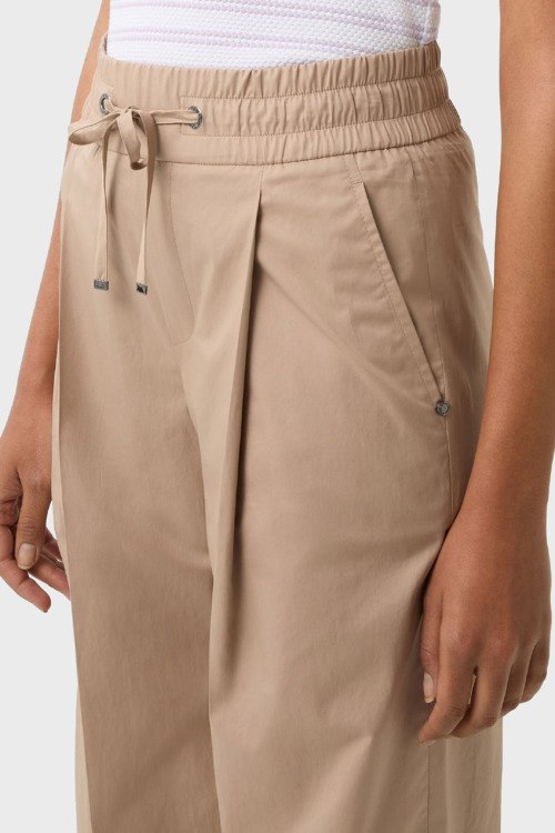 Детали: Женские бежевые брюки Ella из хлопкового микса от Bogner (Богнер). Классическая длина, прямой крой, эластичная резинка на поясе с кулиской, прорезные карманы