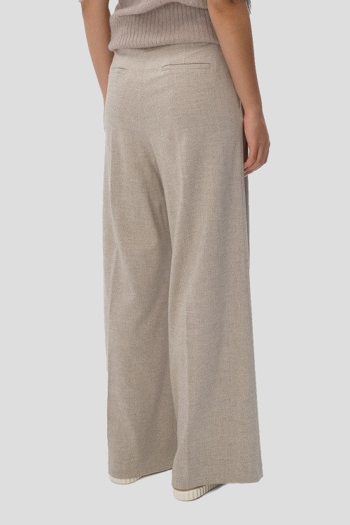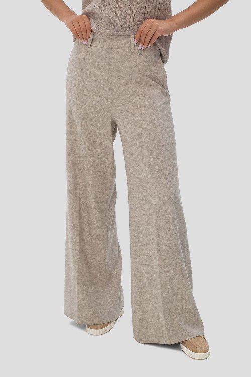 Детали: Женские бежевые широкие брюки из вискозы от Herno (Эрно). Дизайн со стрелками, пояс с петлями для ремня, боковые карманы, застежка-молния сбоку, широкий крой, полная длина