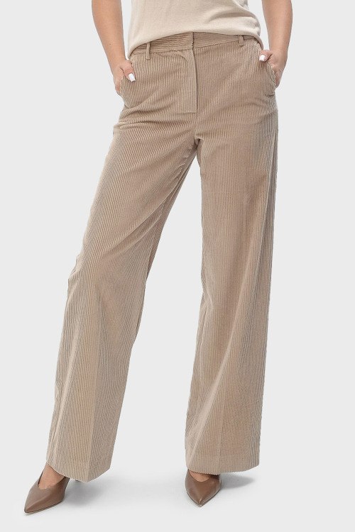 Детали: Женские бежевые вельветовые брюки Tania от Max Mara Weekend (Макс Мара Викенд). Боковые и задние карманы, пояс с петлями для ремня, широкий крой, полная длина