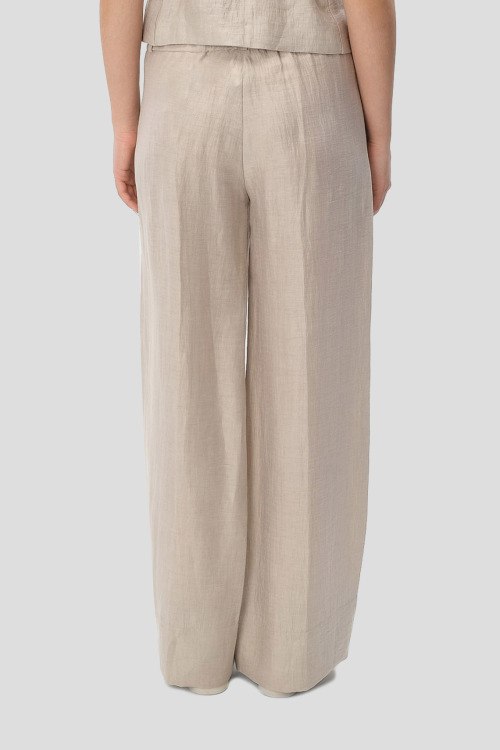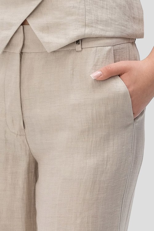 Детали: Женские песочные льняные брюки от Tonet (Тонет). Дизайн со стрелками, боковые карманы, пояс с петлями для ремня, полная длина