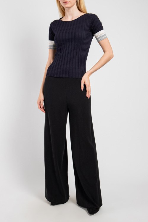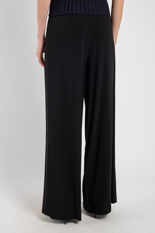 Женские черные брюки из хлопка от Bilancioni (Биланчиони). Расклешенный силуэт, средняя посадка, модель без застежки, широкий эластичный пояс