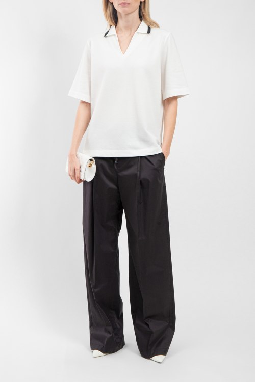 Женские черные хлопковые брюки Ella-2 от Bogner (Богнер). Дизайн с защипами, эластичный пояс на завязках, боковые карманы, широкий крой, полная длина.