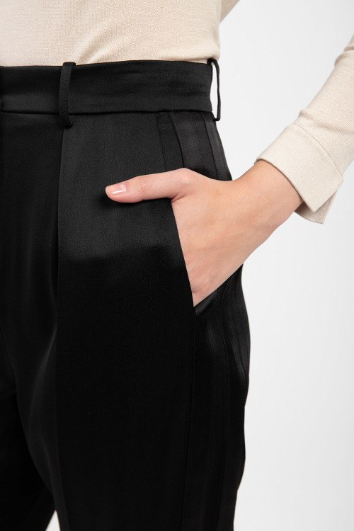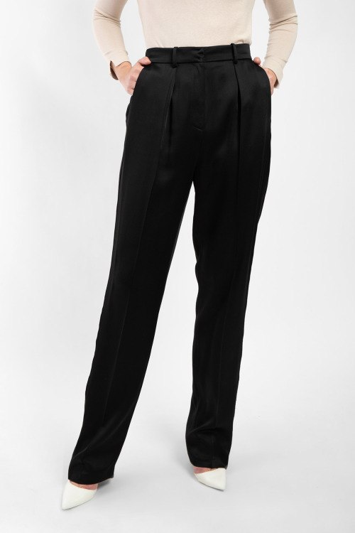 Детали: Женские черные брюки из ацетата и вискозы от Elisabetta Franchi (Елизабетта Франчи). Классическая длина, высокая посадка, застежка на молнию и пуговицу, прорезные карманы, прямой крой, петли в поясе для ремня