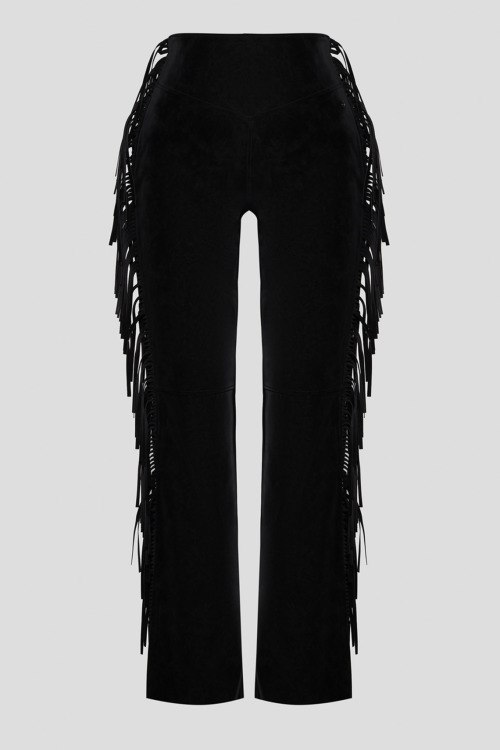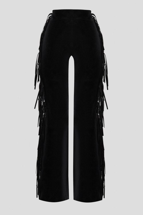Детали: Женские черные брюки от Goldbergh (Голдберг).Декор бахромой по краям, расклешенный крой, полная длина. Обхват пояса: для размера 38 - 76 см, обхват бедер: для размера 38 - 92 см, длина штанины: для размера 38 - 116 см, длина по шаговому шву: для размера 38 - 86 см