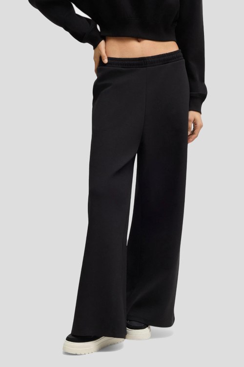 Детали: Женские черные брюки Nalosia из хлопкового микса от Hugo by Hugo Boss (Хуго бай Хуго Босс). Классическая длина, эластичная резинка на поясе, расклешенная модель,прорезные карманы