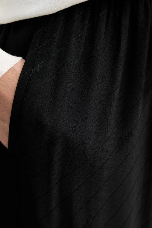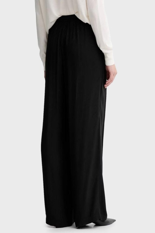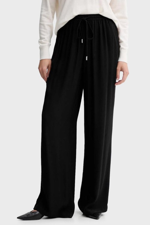 Детали: Женские черные брюки из вискозы C_Tane от Hugo Boss (Хуго Босс). Эластичный пояс на завязках, боковые карманы, широкий крой, полная длина