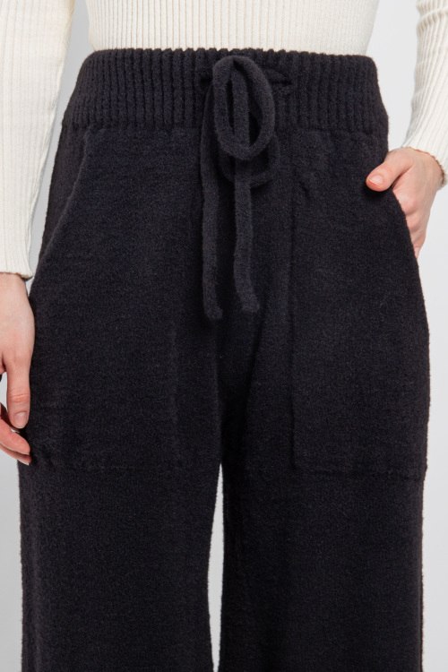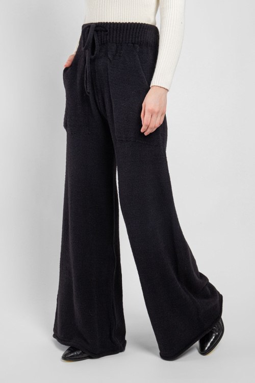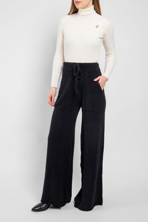 Детали: Женские черные брюки из шерсти и акрила от J.B4 Just Before (Джаст Бифо). Удлиненная модель, к низу расклешенные, пояс на эластичной резинке, по бокам карманы