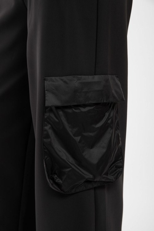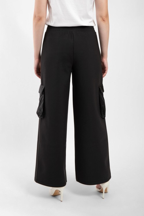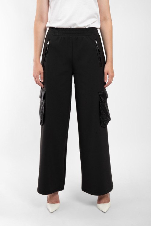 Детали: Женские черные брюки из полиамида и эластана от Max Mara Leisure (Макс Мара Лэжэ). Классическая длина, расклешенная модель, эластичная резинка на поясе, прорезные карманы на молнии, накладные карманы с клапаном