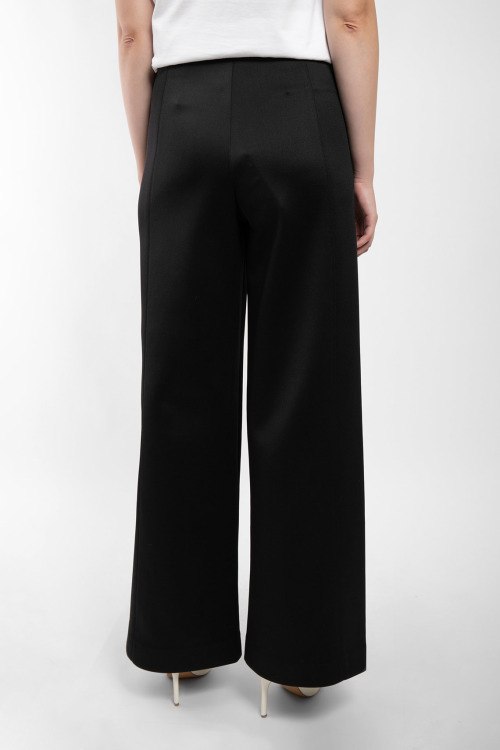 Детали: Женские черные брюки-палаццо из полиэстера и эластана от Max Mara Leisure (Макс Мара Лэжэ). Классическая длина, высокая посадка, застежка на молнию, расклешенная модель от бедра