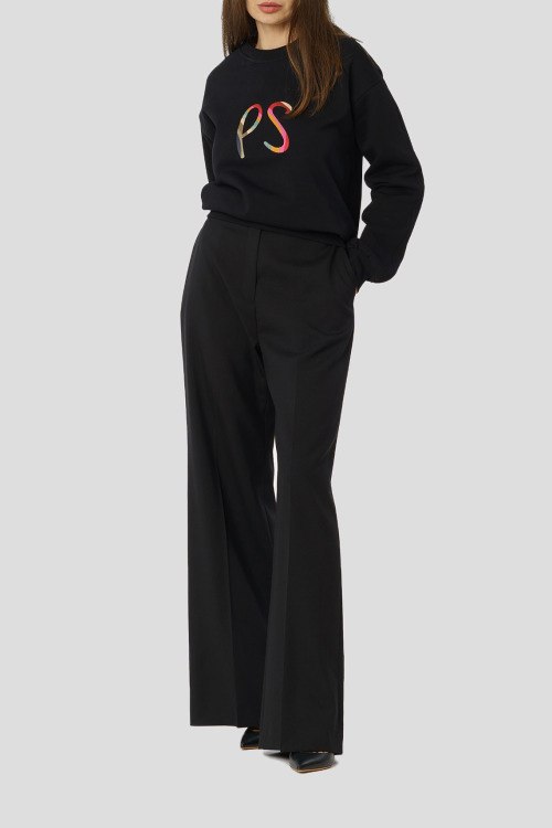 Детали: Женские черные шерстяные брюки от Paul Smith (Пол Смит). Дизайн со стрелками, боковые карманы, застежка на молнию и пуговицу, широкий крой, полная длина