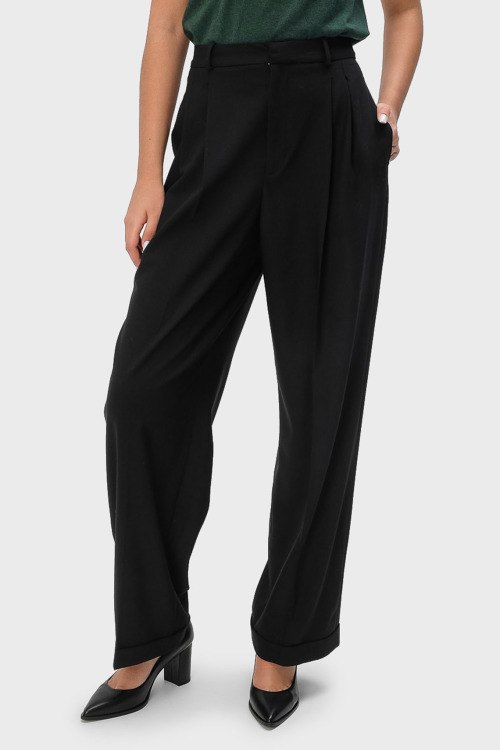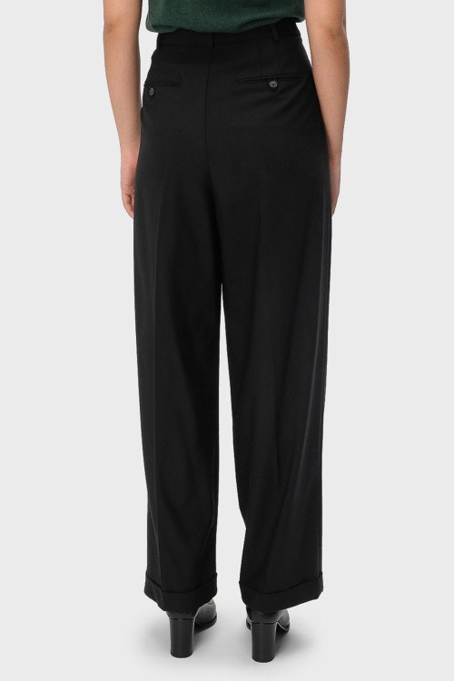 Детали: Женские черные брюки из шерстного микса от Ralph Lauren (Ральф Лорен). Высокая посадка, застежка на молнию и пуговицу, прямой силуэт, петли в поясе для ремня