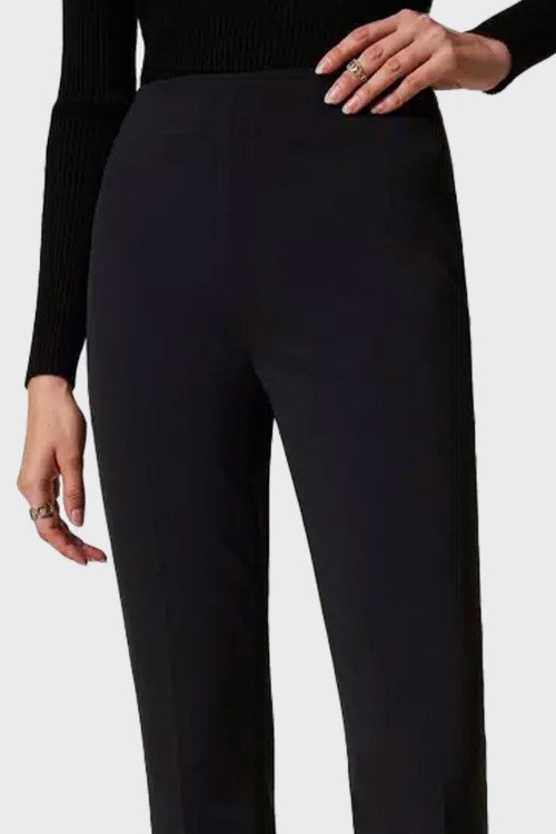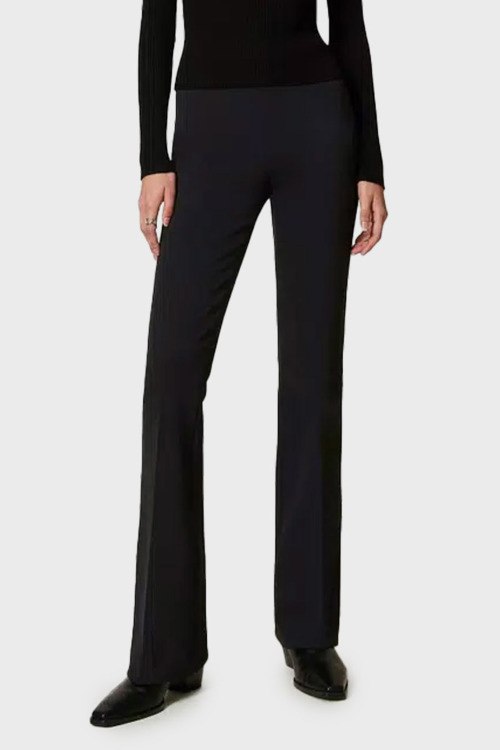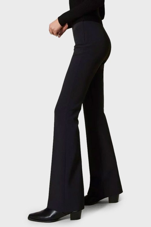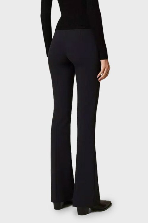 Детали: Женские черные брюки-клеш из полиэстера и эластана от TWINSET (Твинсет). Классическая длина, расклешенная модель, высокая посадка, застежка на молнию сбоку