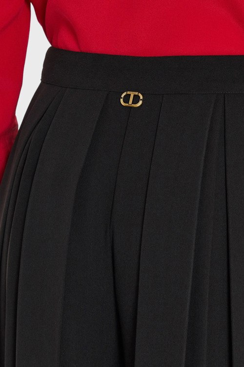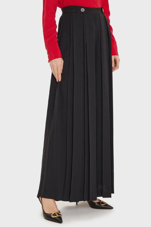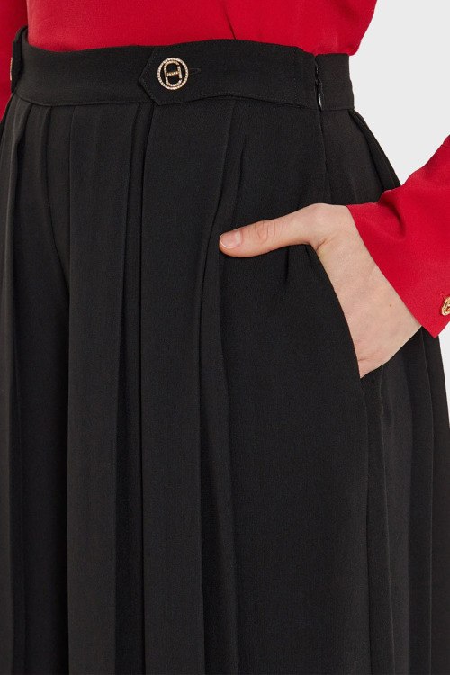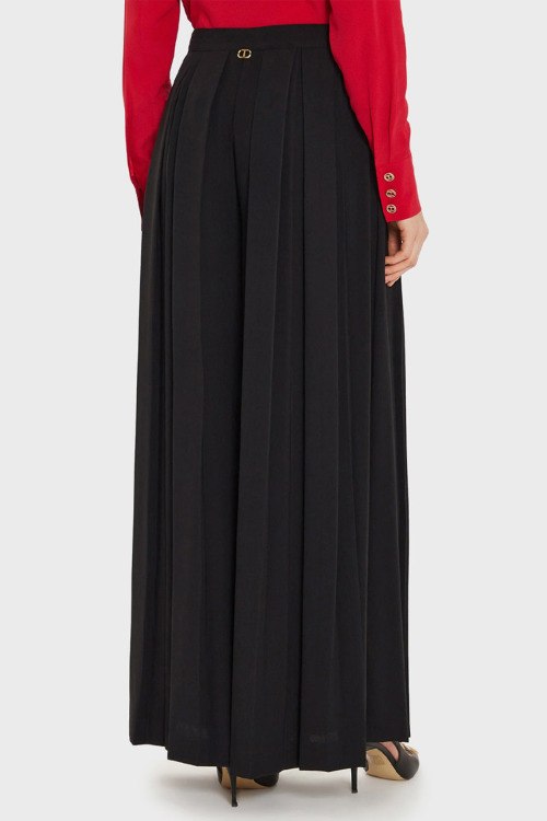 Детали: Женские черные брюки из полиэстера от TWINSET (Твинсет). Высокая посадка, застежка-молния сбоку, плиссированный дизайн, прорезные карманы, металлический логотип бренда