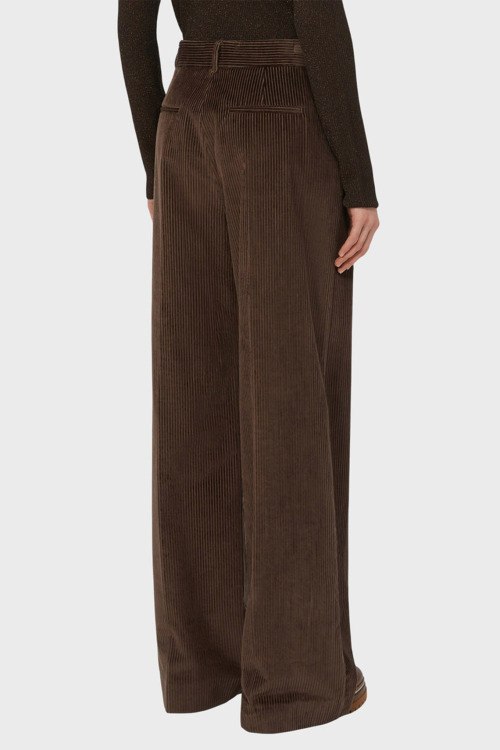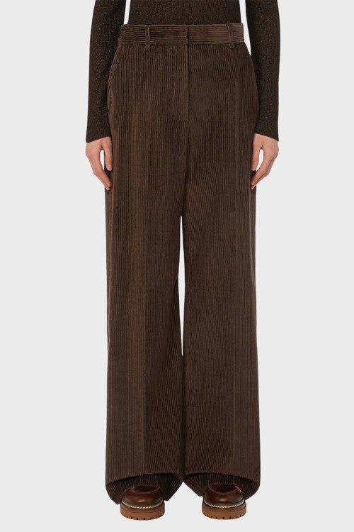 Детали: Женские темно-коричневые вельветовые брюки Tania от Max Mara Weekend (Макс Мара Викенд). Дизайн со стрелками, боковые и задние карманы, пояс с петлями для ремня, широкий крой, полная длина