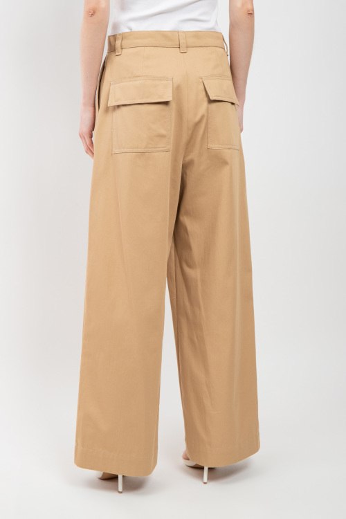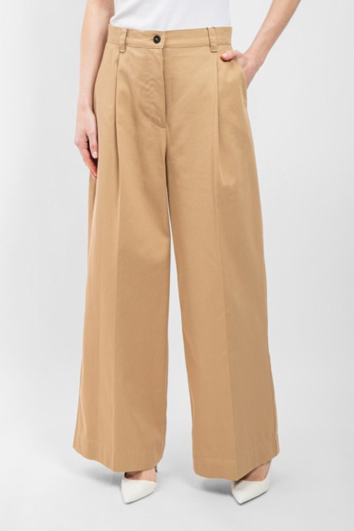 Женские коричневые брюки Nebbie из хлопка от Max Mara Weekend (Макс Мара Викенд). Модель палаццо, высокая посадка, застежка на молнию и пуговицу, четыре кармана, петли в поясе для ремня.