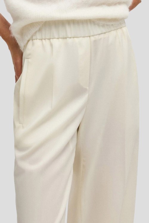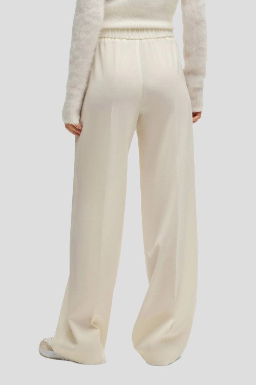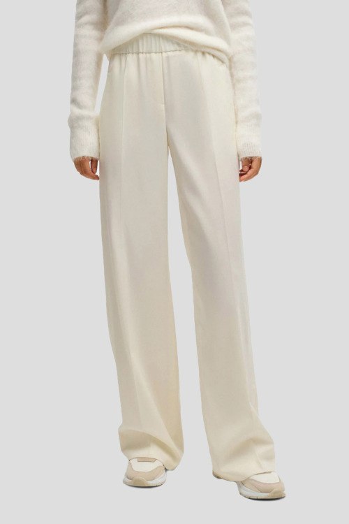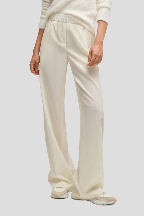 Детали: Женские брюки Toyal молочного оттенка из шерсти от Hugo Boss (Хуго Босс). Классическая длина, эластичная резинка на поясе, прорезные карманы, расклешенная модель