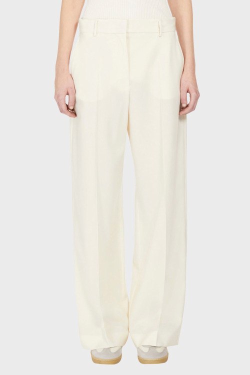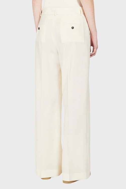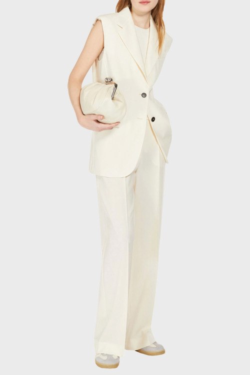 Детали: Женские шерстяные брюки молочного оттенка от Max Mara Weekend (Макс Мара Викенд). Классическая длина, высокая посадка, застежка на молнию и пуговицу, прорезные карманы, петли в поясе для ремня