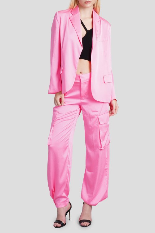 Детали: Женские розовые брюки-карго от Laneus (Ланеус). Пояс с петлями для ремня, боковые карманы с клапаном, наклданые карманы-карго, полная длина
