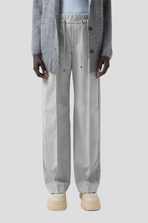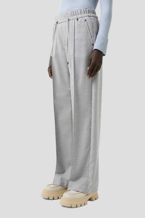 Детали: Женские светло-серые шерстяные брюки Ella от Bogner (Богнер). Эластичный пояс на завязках, боковые карманы, полная длина