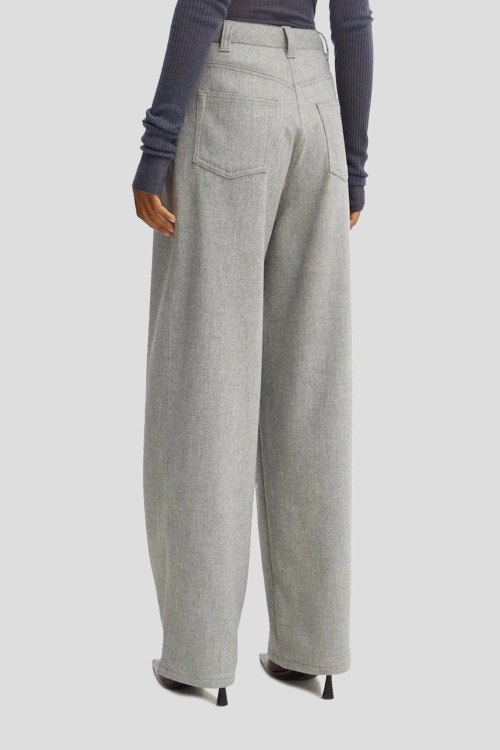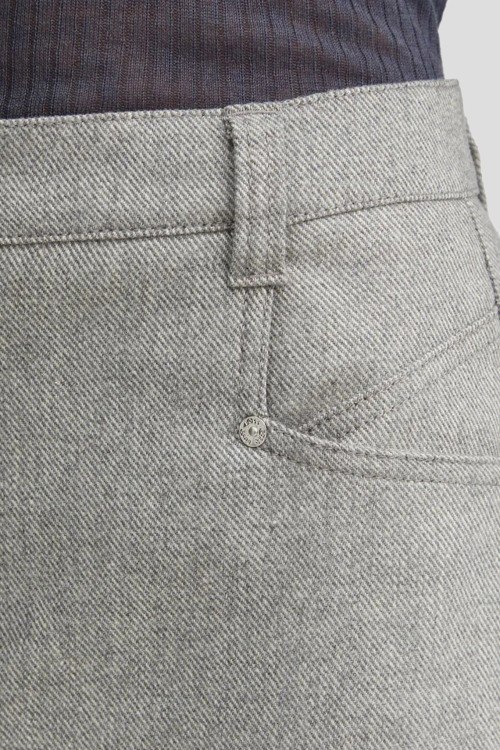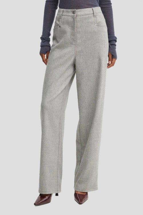 Женские серые брюки от Hugo Boss (Хуго Босс). Высокая посадка, застежка на молнию и пуговицу, расклешенная модель, петли в поясе для ремня