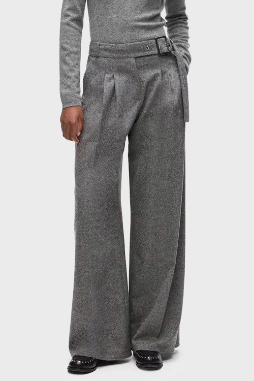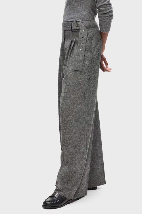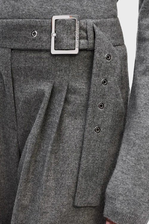 Детали: Женские серые широкие брюки из шерстяного микса от Karl Lagerfeld (Карл Лагерфельд). Пояс с металлической пряжкой, боковые и задние карманы, широкий крой, полная длина