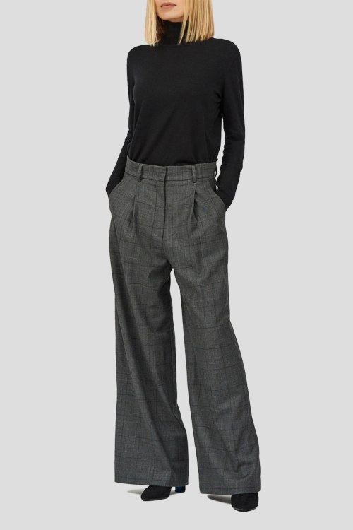 Детали: Женские серые брюки-палаццо из шерстяного микса от Max Mara (Макс Мара). Классическая длина, высокая посадка, застежка на молнию и пуговицу, прорезные карманы, петли в поясе для ремня