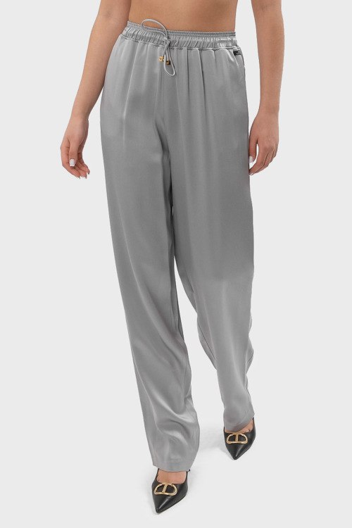Детали: Женские серебристые брюки из ацетата и вискозы от Elisabetta Franchi (Елизабетта Франчи). Эластичный пояс на завязках, боковые карманы, прямой крой, полная длина