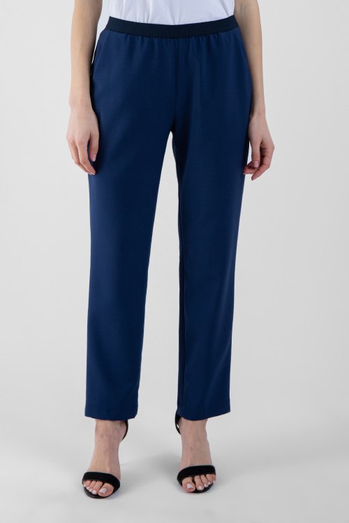 Женские синие брюки из вискозного микса от NIU (Ню и). Классическая длина, средняя посадка, эластичная резинка на поясе. прорезные боковые карманы.