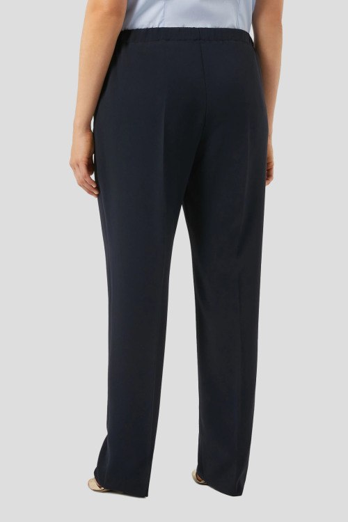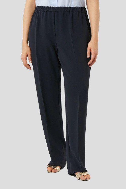 Детали: Женские темно-синие брюки из триацетата и полиэстера от Marina Rinaldi (Марина Ринальди). Высокая посадка, эластичная резинка на поясе, прямой крой