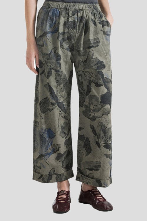 Детали: Женские оливковые хлопковые брюки от Deha (Деха). Цветочный принт, эластичный пояс, боковые карманы, широкий крой, полная длина