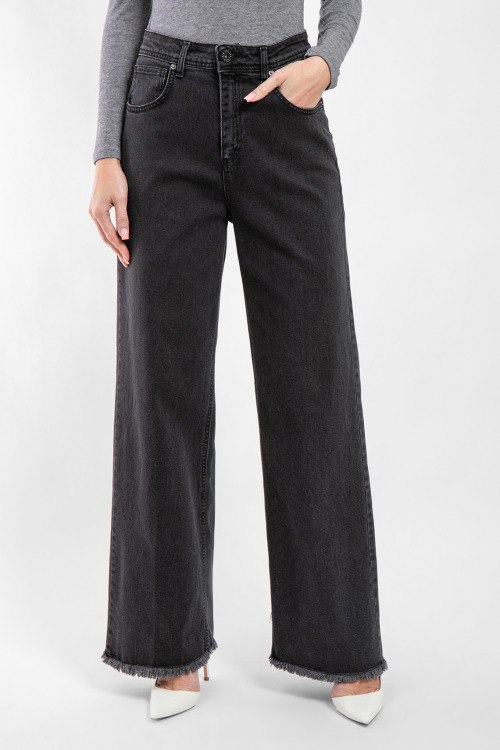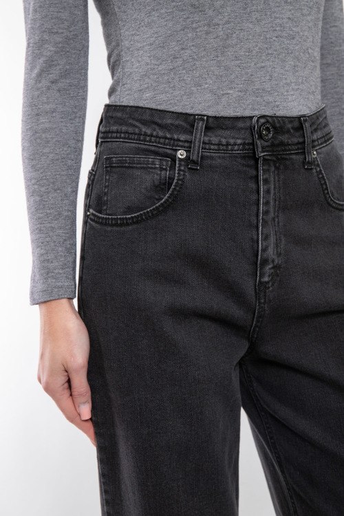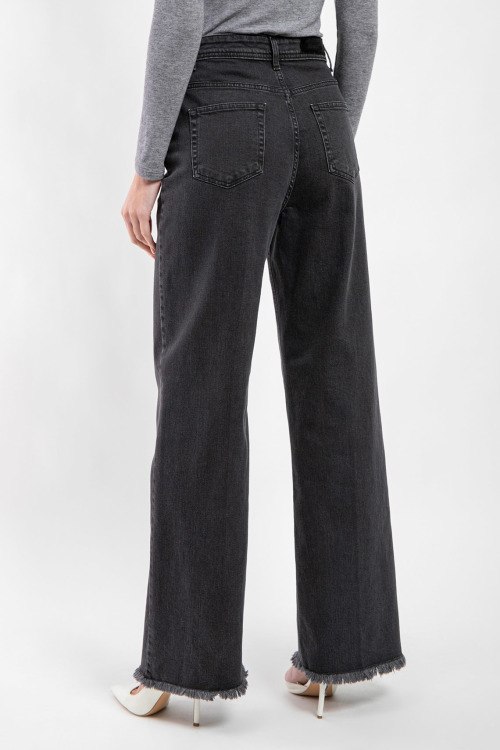 Женские черные джинсы из хлопкового микса от Almanegra (Альманегра). Модель Wide Leg, высокая посадка, застежка на молнию и пуговицу, петли в поясе для ремня, патч-лого. Замеры для размера 42: длина 112 см, ширина по талии: 38 см, ширина по бедрам: 47 см, высота сидения: 36 см, ширина штанины вверху: 30,5 см. Ткань тянется.