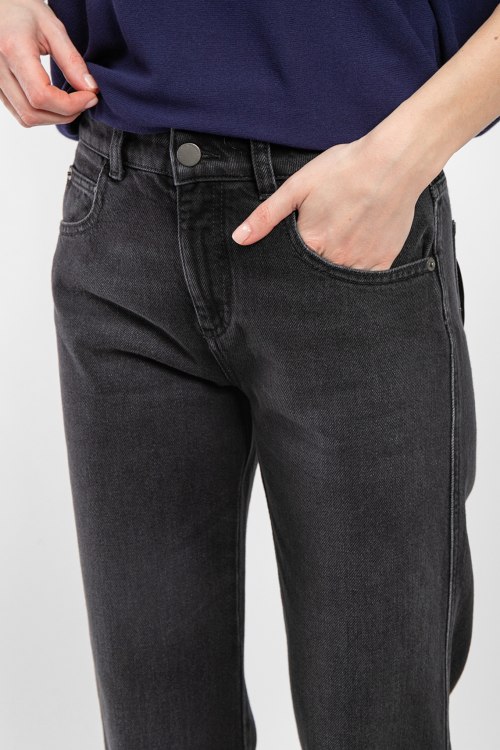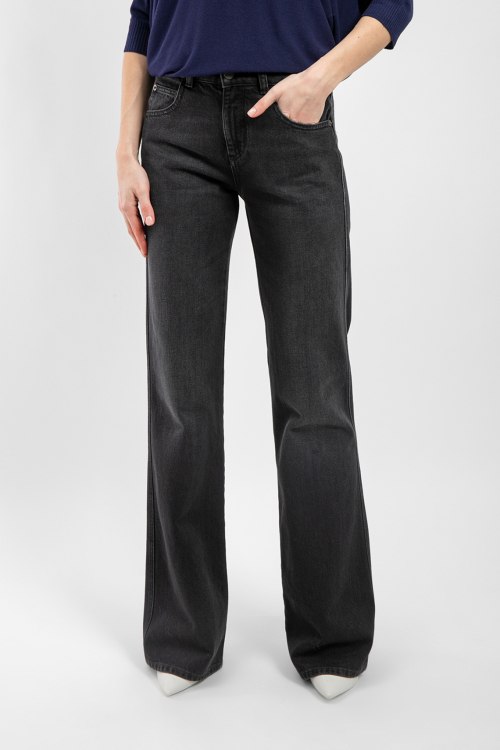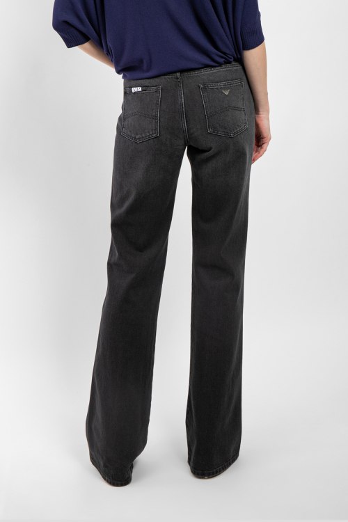 Детали: Женские черные джинсы из хлопка от Armani (Армани). Классическая длина, средняя посадка, застежка на молнию и пуговицу, расклешенная модель, пять карманов, петли в поясе для ремня, патч-лого